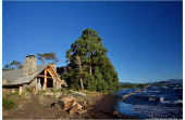 Leben und Arbeiten in Chile: Traumhafte BLOCKHAUS-LODGE AM SEE mit Blick zum Vulkan !